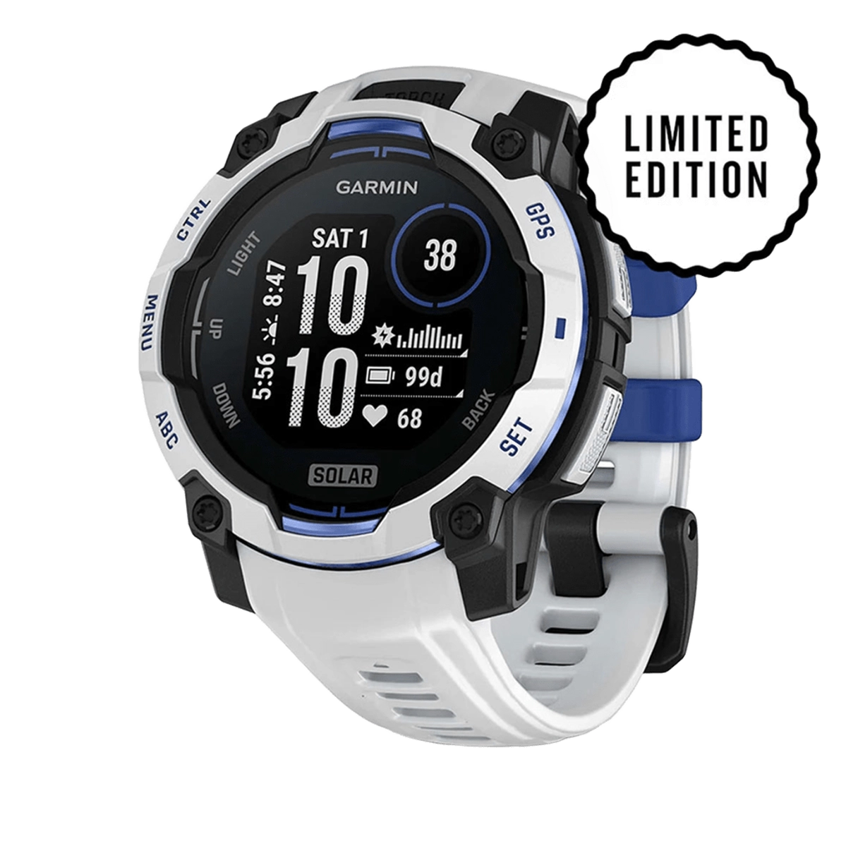 Смарт-часы Garmin Instinct 3 45mm Solar Whitestone with Whitestone/Bolt Blue Band (010-02934-03)