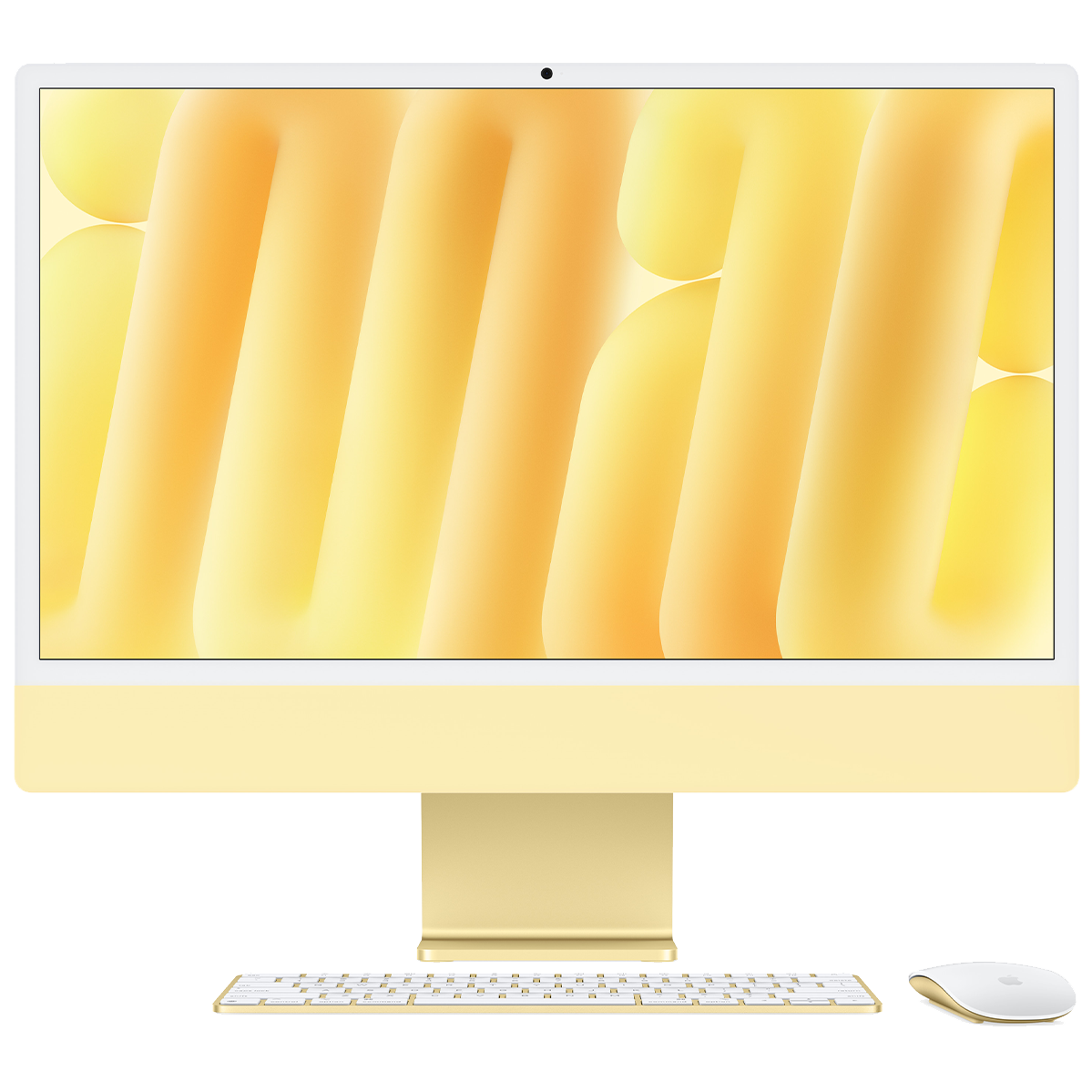 Новый iMac доступен в семи насыщенных цветах: зеленом, желтом, оранжевом, розовом, фиолетовом, синем и серебристом. В комплект входят клавиатура, мышь или соответствующий трекпад цвета, а также порты USB-C, позволяющие заряжать устройства одним кабелем. Magic Keyboard с Touch ID позволяет быстро разблокировать iMac, переключаться между пользователями, пользоваться Apple Pay и загружать приложения.