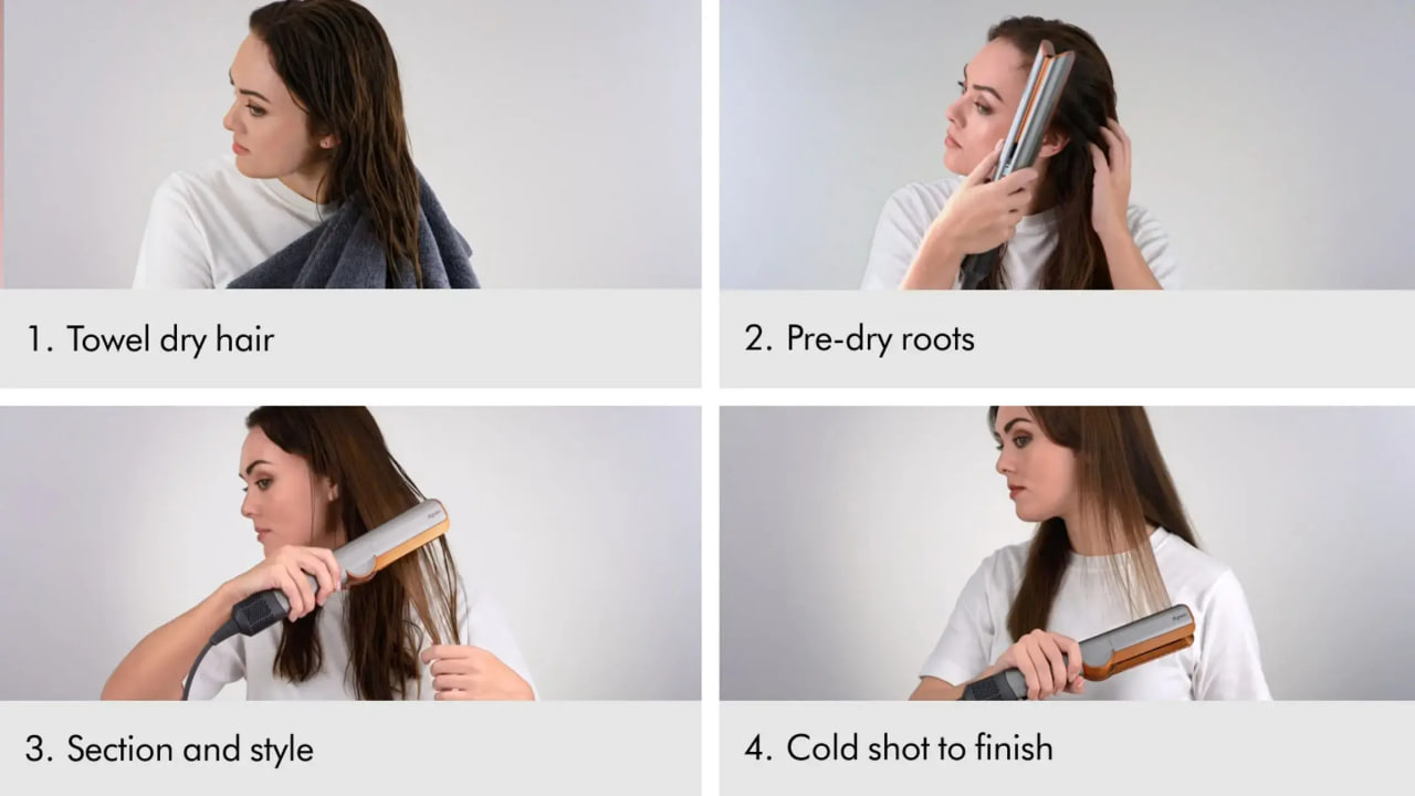 Наша новейшая технология по уходу за волосами использует поток воздуха под высоким давлением для выпрямления волос во время высыхания. Воздух точно нагревается и равномерно распространяется через прядь, когда вы укладываете – без повреждения теплом.