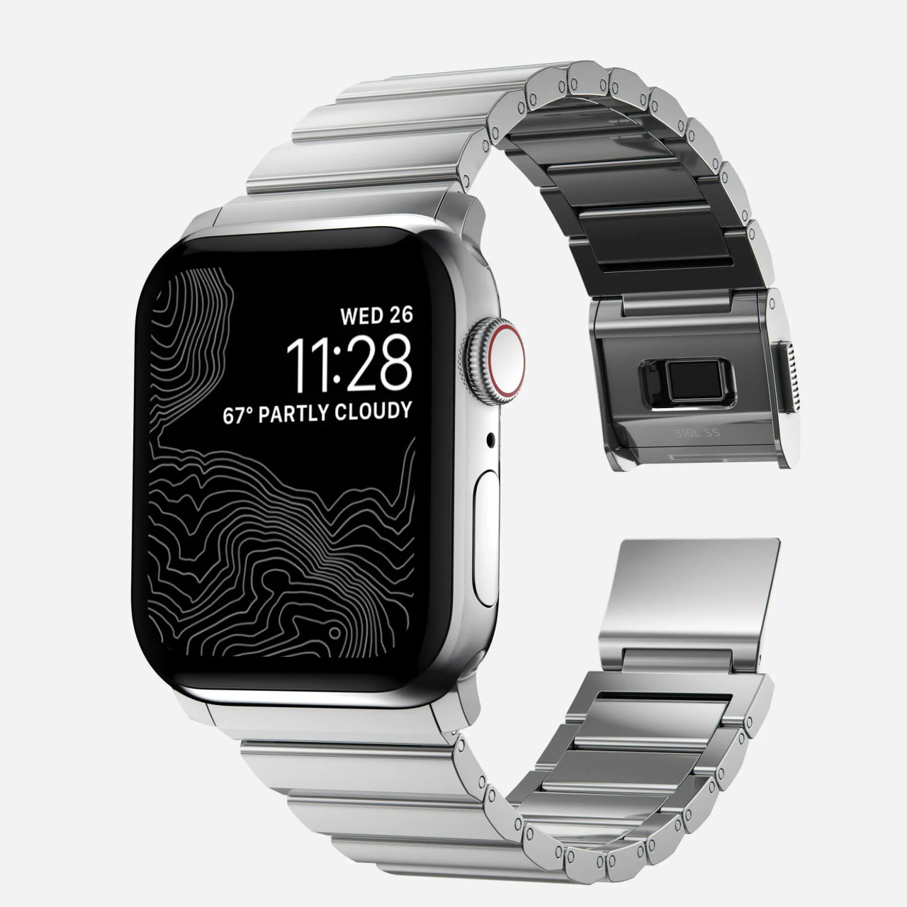 Для виготовлення браслета використовується сталь марки 316L — матеріал, який широко застосовується у преміальних годинниках. Вона стійка до корозії, подряпин і механічного зносу, що робить ремінець ідеальним для щоденного носіння.